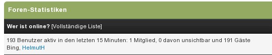 Ja da sind auch sicherlich einige Bots dabei, aber 193 Besucher in den letzten 15 Minuten, wo ich dort angemeldet war,