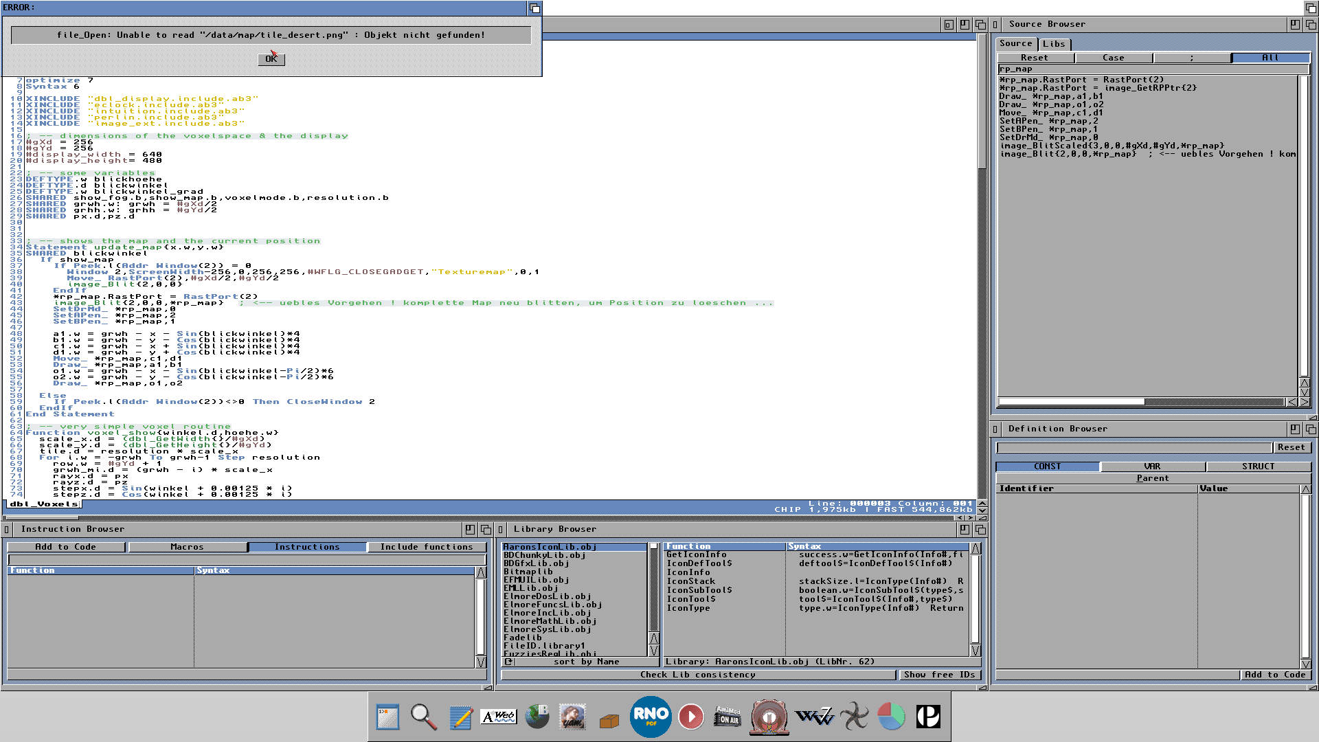 Aus Interesse wollte ich mir die VoxelDemo anschauen und habe sie mir von folgender Seite heruntergeladen: https://sourceforge.net/p/amiblitz3/code.../Examples/